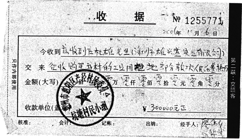 张育强收到这笔200万元款项后,很长一段时间销声匿迹,没有了征地情况的反馈。在雄兴盛公司一再追问下,张育强才表示:“现在征地的价格比你们原来提出的价格高出很多了……”随口说其中给了各村小组组长多少钱,给盖公章的人每人5万元等等。